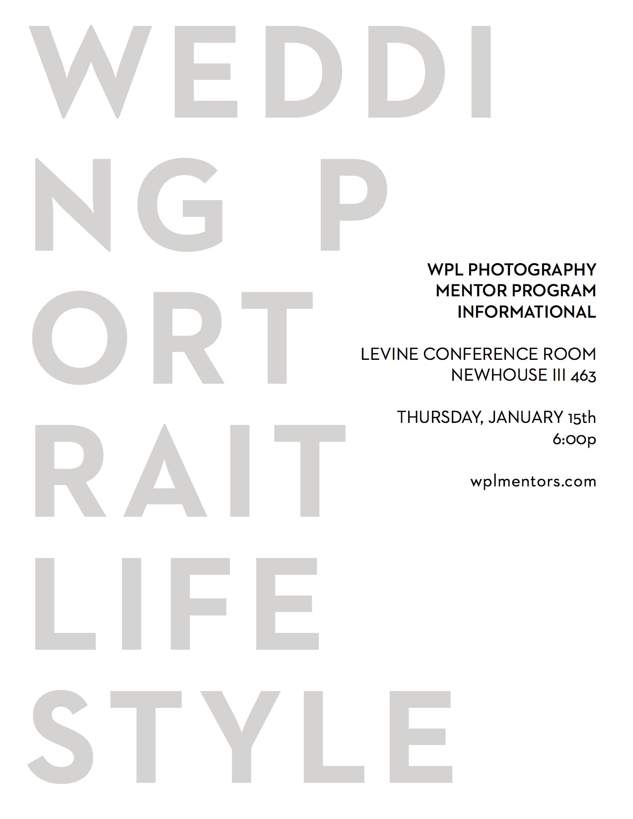 Beginning in spring 2015, WPL will be hosting monthly meetings on the Syracuse University campus to encourage young photographers interested in pursuing careers in wedding, portrait and lifestyle photography.